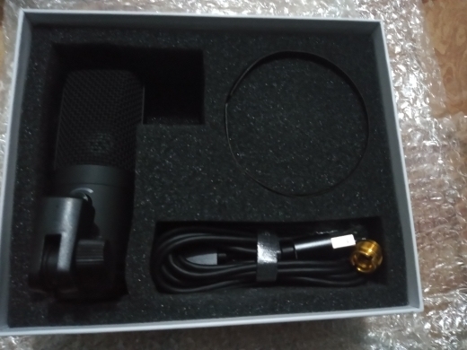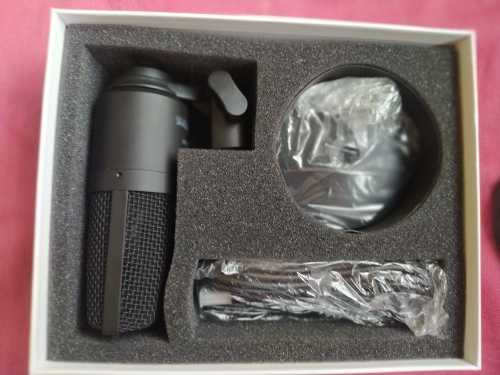 The microphone is good, though the box was a little dented. When I took out the microphone, there was a little dent in the middle, on the net. Recording from the microphone, high-quality, I can hear myself without delay. Only the noises get in the way, but this can be fixed in the program.