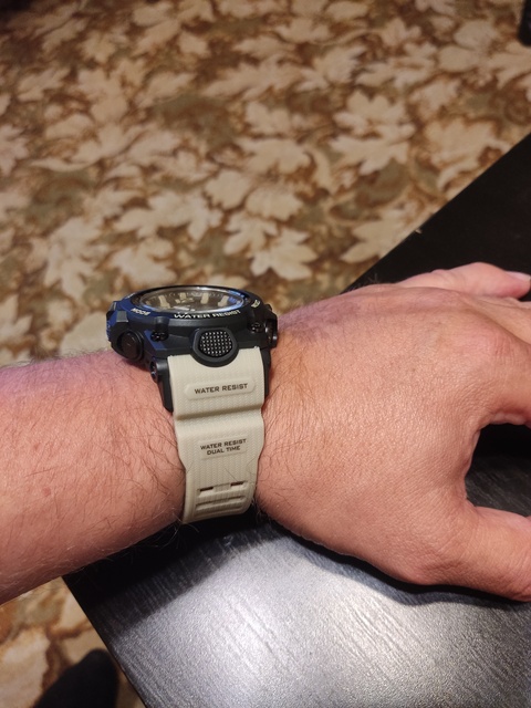 The watch is great! I had the same ones. Ordered a few years ago, broke quartz when I went to change the second battery myself), so I can compare. Materials have become much better. They were strong then. The strap, it seems to me, is also plastic but clearly more elastic. That strap never broke, but it was stiffer. The case of the watch used to be just plastic, but now it seems to be made of hard matte rubber, which looks very cool and drains to the touch. Even when pressed hard with a nail, there is a slight push. Good or bad, time will tell, but so far I like it very much. From experience, 2 batteries, one (small, deep) on quartz, walks for several years. The second is large for electronic, for a year, it changes easily. I swam in that watch, everything was fine. In general, the quality has grown! For this money is generally Super! Well done! I advise you! P.S. Thanks to the store for the gift!