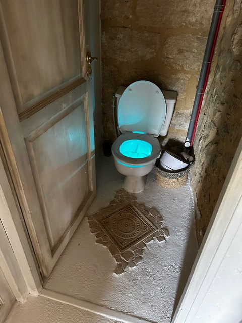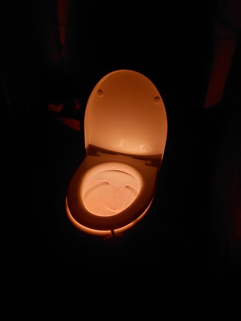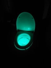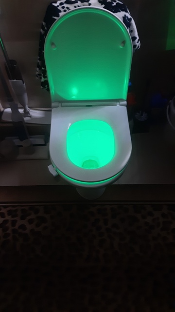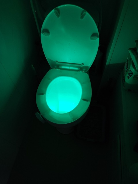 Cool thing, installed. You go to the toilet, and the toilet glows, very unusual, even frightening…