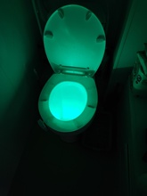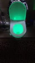 In the toilet did not shove :), but glued to the wall. Did not immediately understand how to set it up. Works in different modes and you can choose between 8 colors and different glow intensity. Or even a rainbow will change.