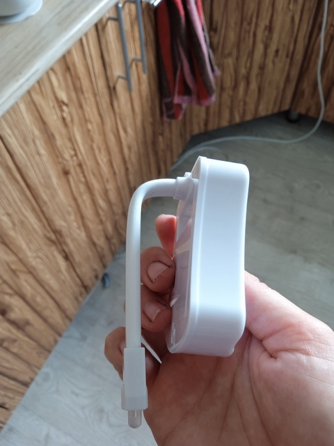 The device corresponds to the description, made carefully, qualitatively. All lighting modes work (8 colors + color selection mode). The motion sensor is very sensitive. The lighting sensor is triggered only if the light falls directly on it, so it is possible to turn on the backlight even if there is indirect lighting. Also, when installing, it should be provided that the seat does not attach the wire. When installed on a rounded toilet rim, additional fixation of the device may be required. Delivery is fast, in the post office within 16 days from the date of order. The package was slightly dented, but the product was not damaged. I recommend the product and store. Thank you.